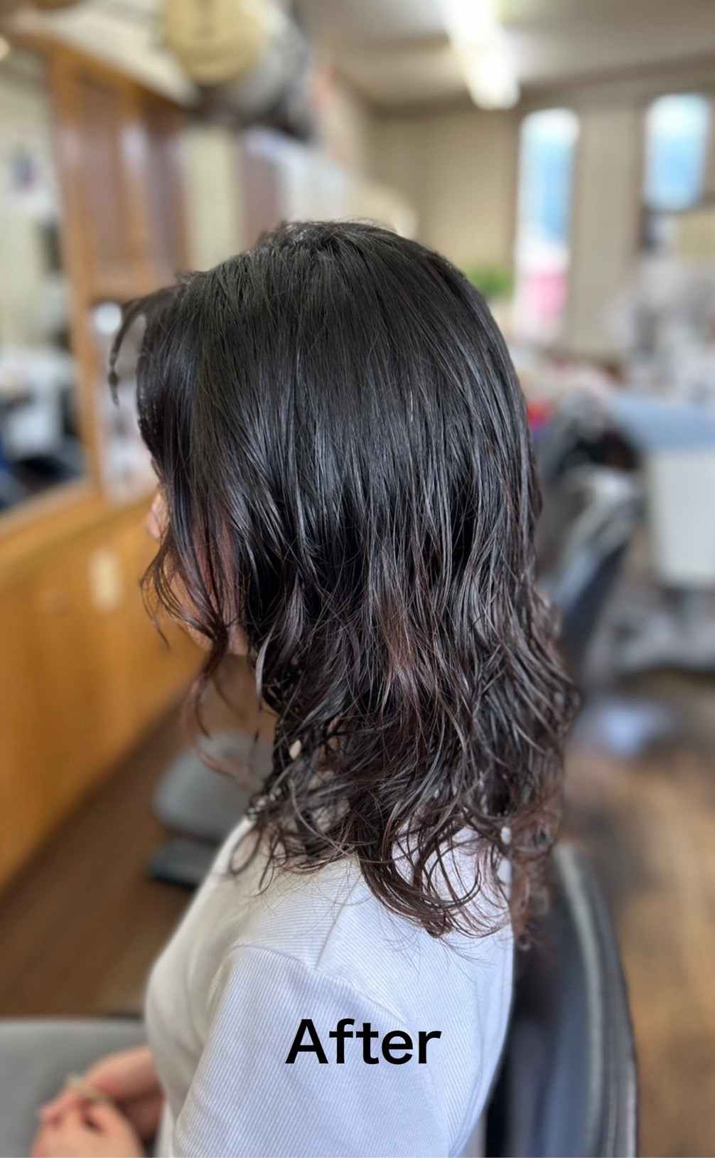 敏感肌のかたでも、大丈夫! 大きめのうるツヤウェーブで大人髪に。